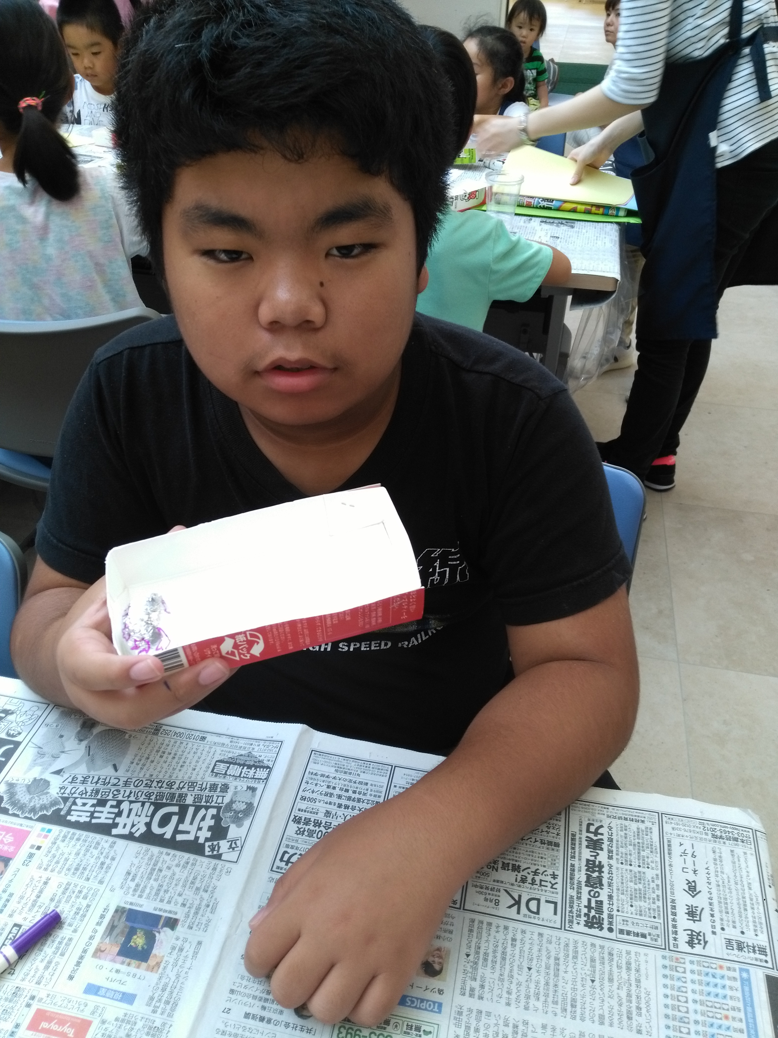 その後は、チラシ折り紙で、紙鉄砲をつくり、楽しく遊びました✌('ω'✌ )